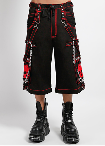 Bold red baggie pants built for the alternative scene. Featuring chain details, metal studs, and skull-embossed pockets for maximum edge. Crafted from 100% cotton for comfort and durability. A statement piece that commands attention. Converts from full-length pants to shorts with a simple adjustment. Deep pockets keep your essentials secure without the worry of items slipping out. Perfect for versatile styling across seasons.