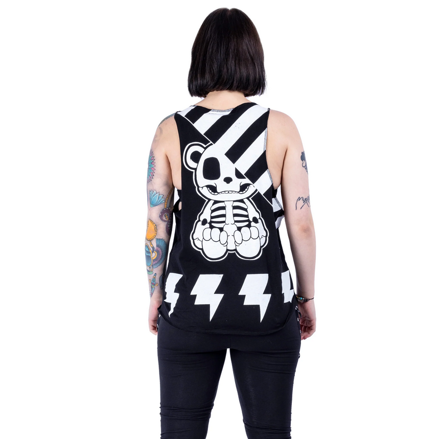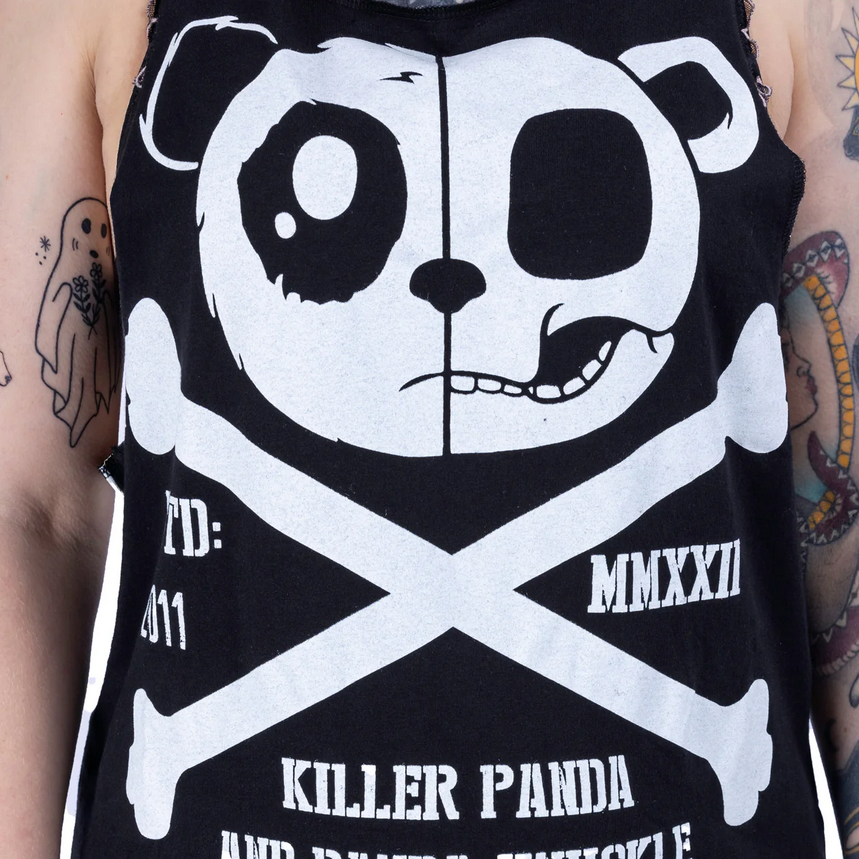 Stand out with the KP Skull and Crossbones Vest from Killer Panda. Crafted from 100% polyester, this black vest combines comfort with a striking skull and crossbones design. Tailored for ladies, it’s the perfect statement piece to boost your wardrobe with bold, rebellious flair.